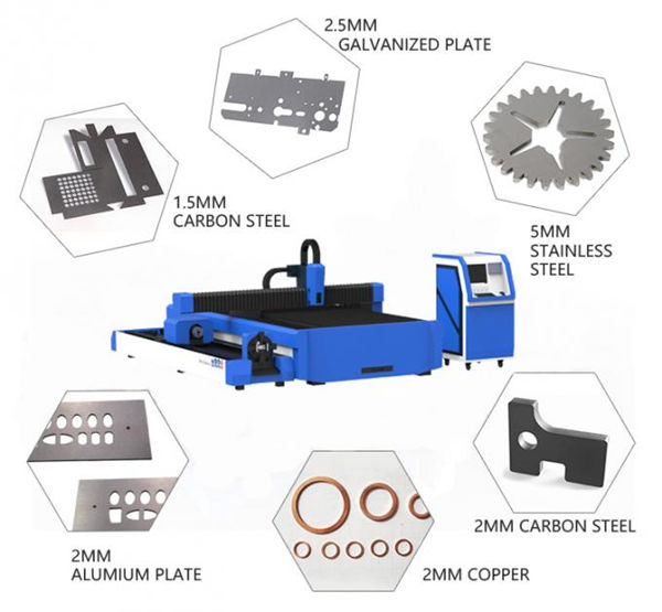 * 0.5-6 എംഎം കാർബൺ സ്റ്റീൽ, 0.5-5 എംഎം സ്റ്റെയിൻലെസ് സ്റ്റീൽ, ഗാൽവാനൈസ്ഡ് സ്റ്റീൽ, ഇലക്ട്രോലൈറ്റിക് സിങ്ക്-കോട്ടിഡ് സ്റ്റീൽ ഷീറ്റ്, സിലിക്കൺ സ്റ്റീൽ, മറ്റ് നേർത്ത മെറ്റൽ ഷീറ്റുകൾ എന്നിവ മുറിക്കാൻ പ്രത്യേകമായി ഉപയോഗിക്കുന്നു .1000W ന് 3 എംഎം അലുമിനിയവും 2 എംഎം ചെമ്പും മുറിക്കാൻ കഴിയും.